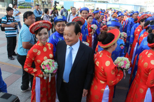 Bí thư Thành ủy TP HCM Đinh La Thăng chúc mừng 100 đôi uyên ương tham gia đám cưới tập thể