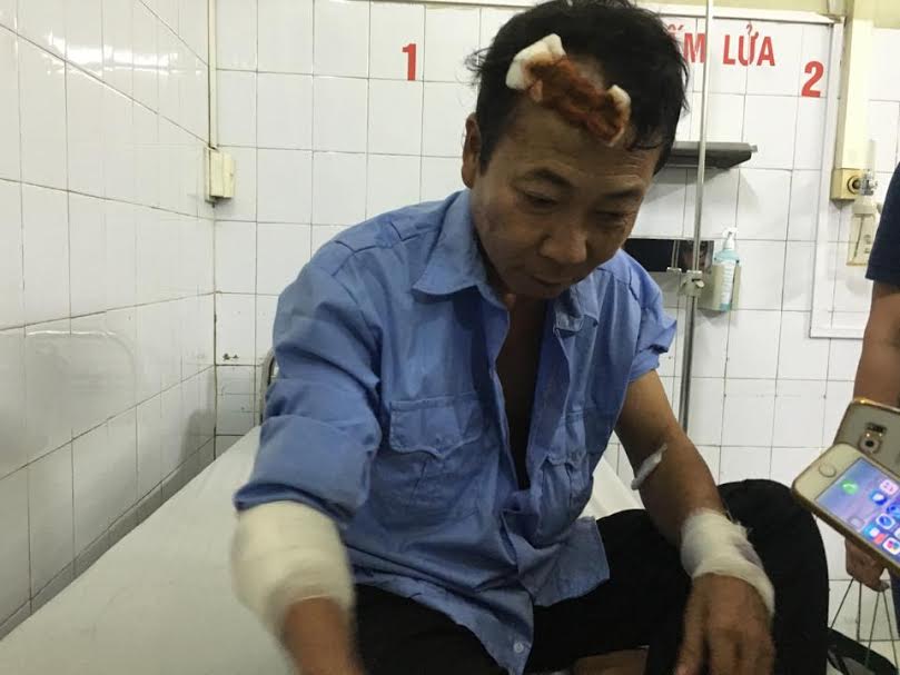 Vụ tai nạn khiến ông Bình bị rách sâu ở trên đỉnh đầu, cánh tay phải bị rách phải khâu hơn 10 mũi và nhiều chấn thương trên cơ thể.