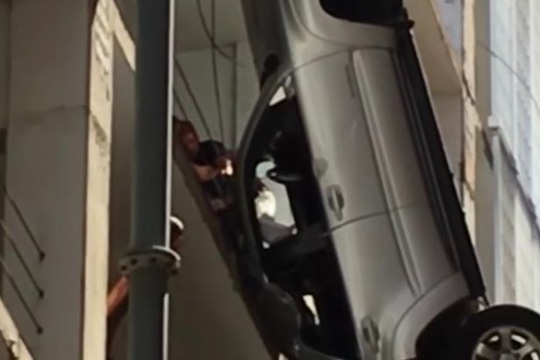 Chủ chiếc xe, một thanh niên 24 tuổi, lao thẳng vào hàng rào bảo vệ và thoát chết trong gang tấc khi một thanh rào quấn quanh trục xe, khiến nó lơ lửng bên hông tòa nhà. Anh này sau đó may mắn an toàn thoát ra khỏi chiếc xe và leo trở vào garage.