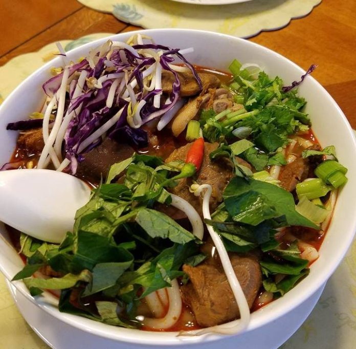 Bún bò ở Mỹ khẩu vị cũng thay đổi ít nhiều so với bún bò trong nước. (Hình : Khương Diệp)