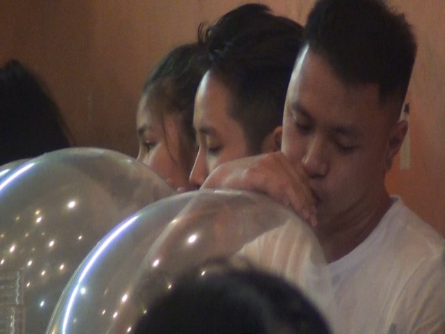 Ở các khu vực phố cổ như Tạ Hiện, Lương Ngọc Quyến, Nguyễn Hữu Huân... dễ dàng bắt gặp hình ảnh các bạn trẻ thở ra hít vào loại bóng được bơm khí N2O (Nitrous Oxide) - một loại khí tác động trực tiếp đến hệ thần kinh, gây ra ảo giác hoặc tràng cười sảng khoái.
