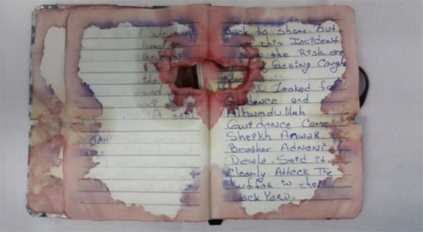 "Các người (Chính phủ Mỹ) vẫn tiếp tục... cuộc tàn sát chống lại thánh chiến binh ở Afghanistan, Iraq, Sham [Syria], Palestine" - trích đoạn cuốn sổ mà các nhà chức trách thu giữ được.