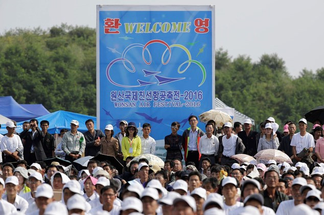 Người dân Triêu Tiên tập trung xem các màn bay biểu diễn ở lễ hội. (Nguồn: AP).