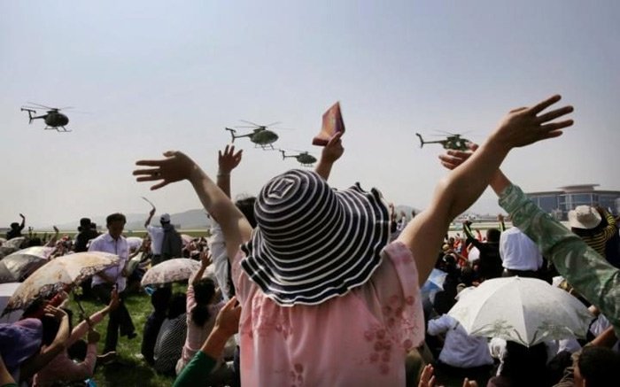 Vietbf.com - Triển lãm hàng không đầu tiên của Triều Tiên diễn ra trong hai ngày 24 và 25/9 tại Sân bay Kalma ở Wonsan, với các màn biểu diễn ngoạn mục của nhiều máy bay và trực thăng, với sự kiện thu hút khoảng 200 người yêu máy bay trên khắp thế giới tới Wonsan với tư cách khách mời danh dự. Phía Triều Tiên có hàng nghìn người kéo đến xem.