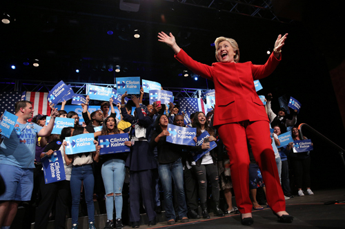 Bà Clinton và những người ủng hộ trong đêm tranh luận trực tiếp với ông Trump. Ảnh: Reuters