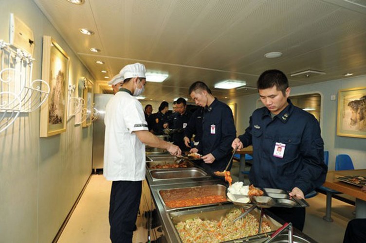 Thậm chí, bếp ăn trên tàu sân bay Liêu Ninh còn có phòng chế biến bánh riêng. Đặc biệt, sau bữa ăn trưa, binh sĩ Trung Quốc có chế độ nghỉ ngơi khá thoải mái kéo dài đến 2 giờ trước khi vào ca chiều.