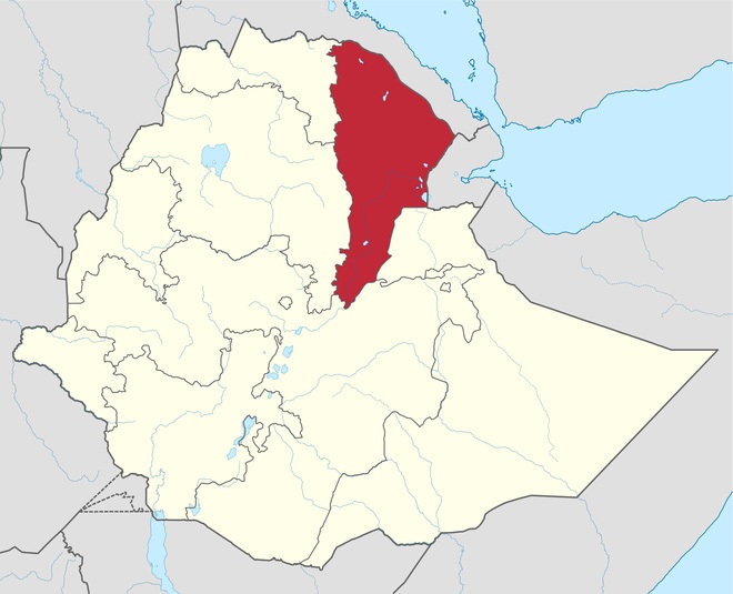 Vùng trũng Afar trên bản đồ (màu đỏ đậm).