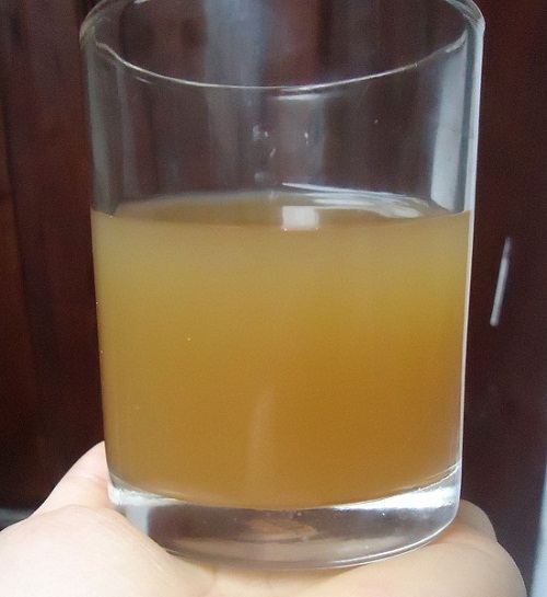 – Khi nước sôi, các bạn hãy cho thêm tỏi và gừng, cuối cùng là cho bột nghệ. Vặn lửa nhỏ và đun sao cho lượng nước trong nồi giảm còn một nửa thì tắt bếp, để nguội hoàn toàn rồi cho vào tủ lạnh để bảo quản.