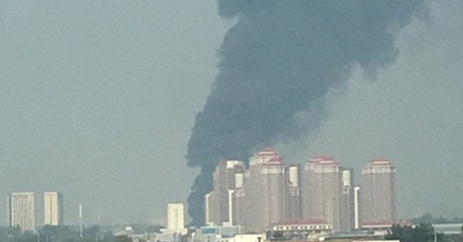 Chiếc tiêm kích J-10A rơi và phát nổ tạo thành một cột khói dày đặc. Ảnh: East Pendulum.