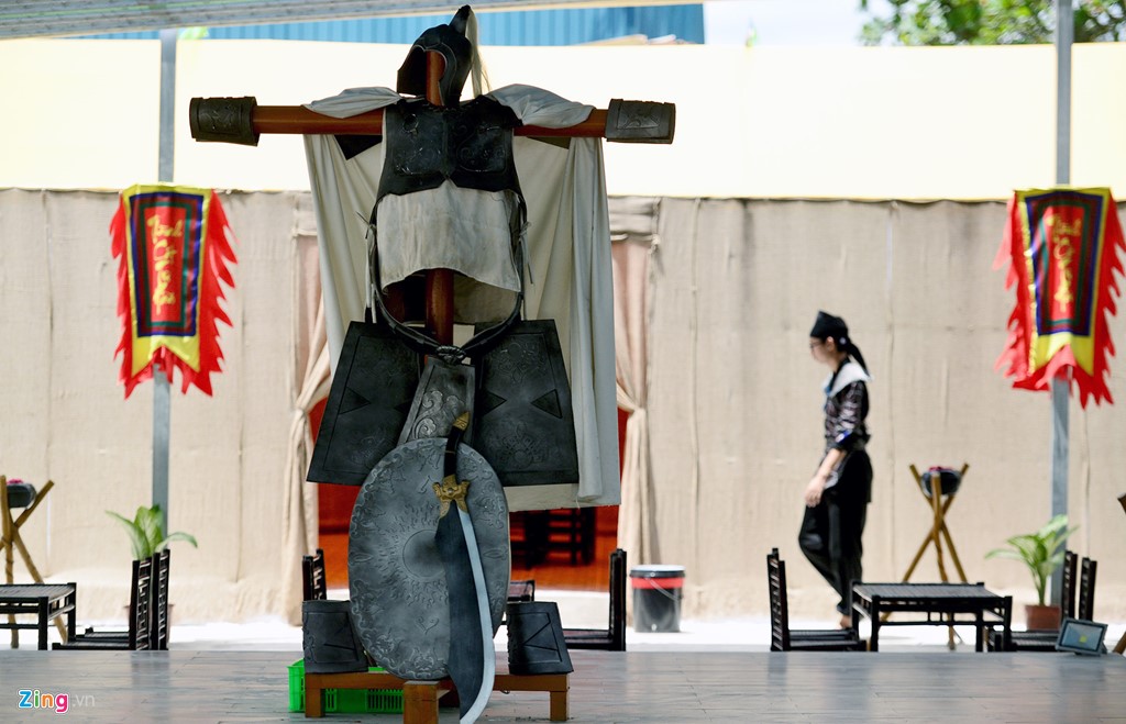 Bộ áo giáp dành cho tướng quân làm bằng cao su. Anh Phan Minh Thông - chủ nhà hàng - cho biết khách tới đây nếu có đủ sức mặc bộ giáp, cầm khiên đao (nặng tổng cộng 130 kg khi gắn các thanh sắt vào) đi vài bước, uống một bát rượu sẽ được uống bia miễn phí không giới hạn.