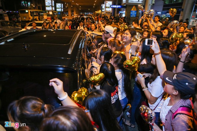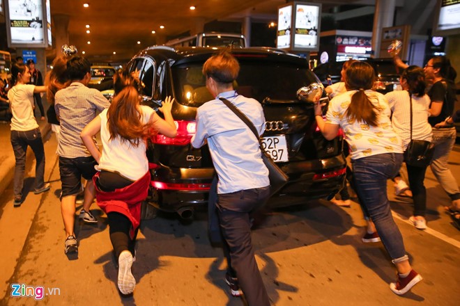 Ngay cả khi Mỹ Tâm lên ôtô, người hâm mộ vẫn chưa chịu rời đi. Họ bao vây tứ phía để ghi lại những khoảnh khắc bên thần tượng. Nhiều bạn trẻ còn chạy theo xe tạo ra cảnh tượng khá hỗn loạn và mất an toàn.