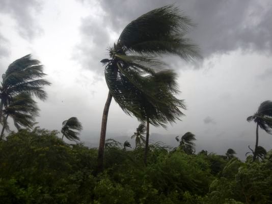 Cây cối nghiêng ngả vì siêu bão Matthew quét qua Port-au-Prince, Haiti, ngày 4/10. Ảnh: AP