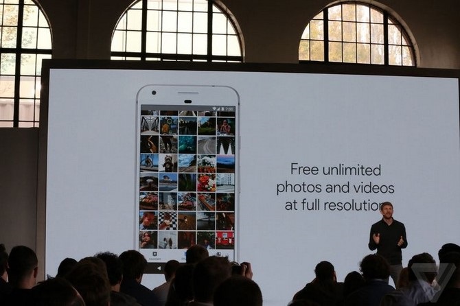 Chỉ dành cho Pixel và Pixel XL, Google sẽ cung cấp kho dung lượng lưu trữ không giới hạn trên Google Photos cho phép người dùng lưu ảnh với chất lượng gốc (độ phân giải cao, không bị nén) và video 4K được quay bởi Pixel.