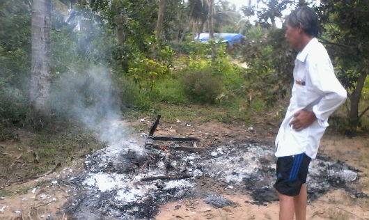 “Hổng nói giấu gì anh, cực chẳng đã tôi mới đem những thứ này đốt đi, gồm: ảnh cưới, thiệp hồng…Tội nghiệp con dâu tương lai của tôi, chỉ còn vài ngày nữa là hai đứa nên duyên chồng vợ. Vụ việc lại xảy ra ngay tại ngôi nhà nơi gia đình tôi đang sống. Làm cha, làm mẹ mong con chí thú làm ăn, hạnh phúc ấm êm thì con đã đạp đổ tất cả. Cha mẹ sinh con, trời sinh tính”.