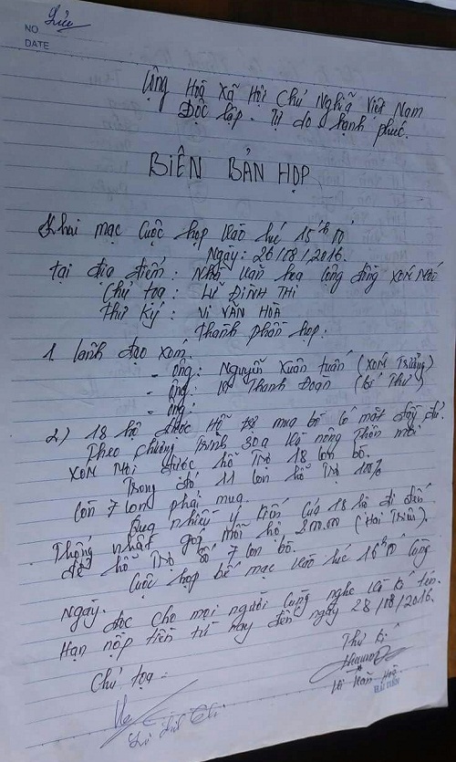 Nhìn chử viết của "chủ tạ" và "thư kí" là biết lủ nầy là thành phần "chăn trâu ưu tú" rồi !!!!!