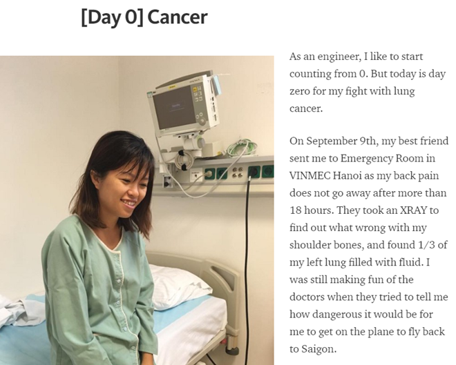 Những chia sẻ về căn bệnh ung thư phổi được Thủy viết trên blog cá nhân. Ảnh chụp màn hình.