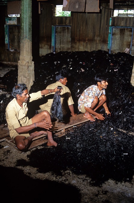 Quá trình bắt đầu tại một ngôi đền như đền Yadagirigutta ở miền nam Ấn Độ, nơi phụ nữ nghèo xếp hàng dài để được cạo đầu. Mái tóc của phụ nữ Ấn Độ được đánh giá cao vì hầu hết đều là tóc “còn trinh”, chưa bao giờ nhuộm, sấy khô hay cắt.