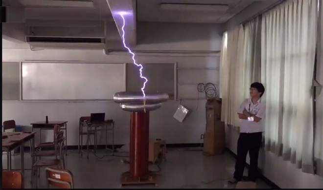 Những h́nh ảnh dưới đây không phải là những ǵ diễn ra trong pḥng thí nghiệm hiện đại mà chính là một giờ học vật lư của một trường trung học tại Nhật Bản.