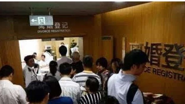 Người Trung Quốc xếp hàng nộp đơn xin ly hôn. Ảnh: Weibo