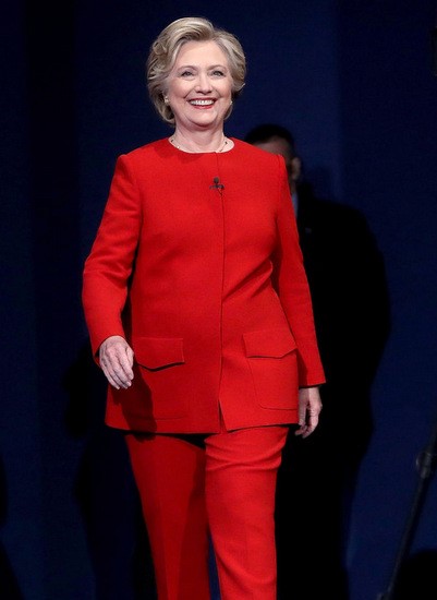 Bộ vest đỏ "quyền lực" bà Hillary Clinton diện trong buổi tranh luận đầu tiên. Ảnh: NY Daily.