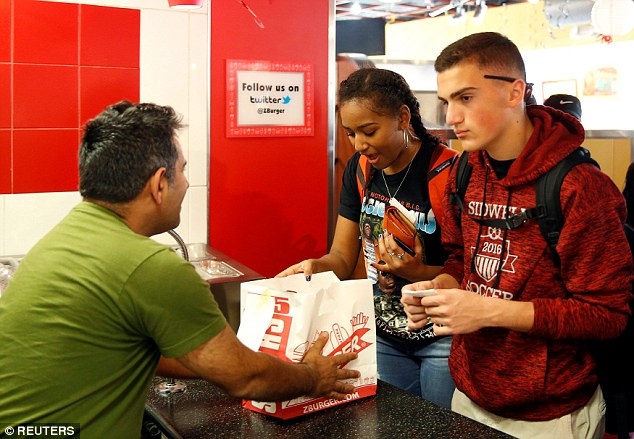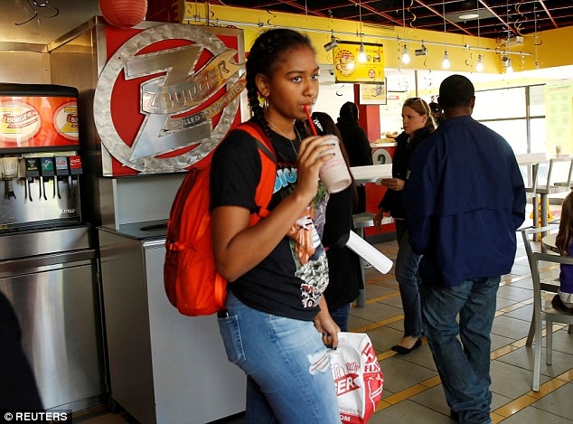 Cô con gái Sasha Obama dùng bữa trưa tại cửa hàng thức ăn nhanh Z-Burger ở Washington, DC. (Ảnh: Reuters)