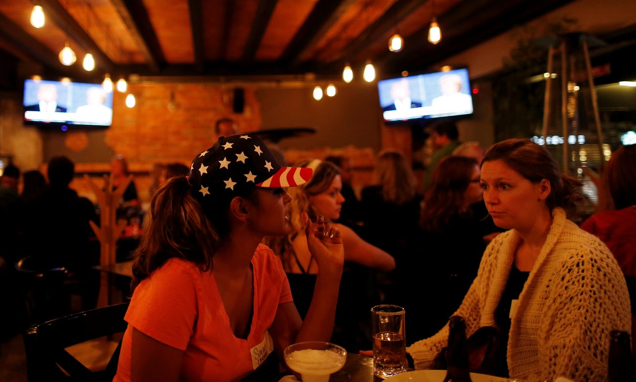 Người Mỹ theo Dân chủ sống tại Mexico thảo luận trong khi theo dõi cuộc tranh luận lần ba giữa ông Trump và bà Hillary hôm 19-10