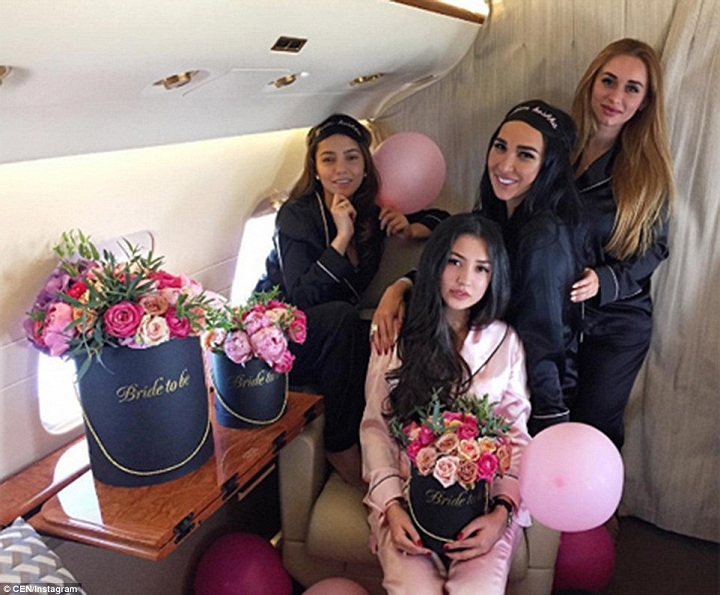 Madina cùng bạn bè bay tới Tây Ban Nha bằng chuyên cơ riêng dể tổ chức tiệc chia tay đời sống độc thân.