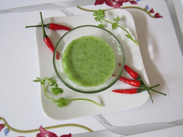 Thực hiện: Muối + nước + đường + giấm cho vào nồi nấu sôi với lửa nhỏ 7 -10 phút. Sau đó cho tương ớt vào hòa chung là tắt bếp. Đổ hỗn hợp ra chén để nguội rồi cho ớt và tỏi băm vào khuấy đều. Trang trí vài lá ngò cho hấp dẫn và màu sắc rực rỡ hơn.