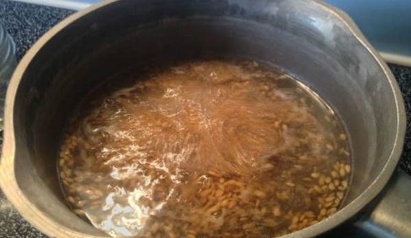 Cho toàn bộ hạt lạnh vào 250ml nước lạnh, giữ yên trong vài giờ và thỉnh thoảng khuấy đều. Tiếp theo, đun sôi hỗn hợp trong 5 phút và lọc lấy nước.