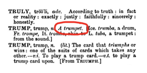 Thêm một minh chứng cho suy đoán này là, từ “trump” trong tên ông Donald Trump chính là từ cổ của “trumpet”.