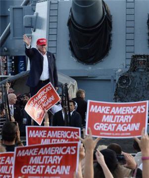 Phát biểu trước người ủng hộ tại bang Pennsylvania hôm 21/10, ông Trump tuyên bố sẽ phê chuẩn đóng mới để nâng số lượng chiến hạm của Hải quân Mỹ từ 274 lên 350 chiếc, như một phần kế hoạch của ông trong một 100 ngày đầu tiên của nhiệm kỳ.