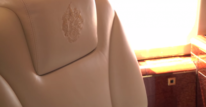 Từ một chiếc máy bay hơn 200 chỗ ngồi còn hơn 40 chỗ, mọi đồ vật trong chuyên cơ của ông Trump đều được mạ vàng. Ngay cả dây an toàn cũng được mạ vàng, ghế được bọc da cao cấp có thêu gia huy của gia đình. Đặc biệt là hệ thống giải trí cũng chẳng khác gì một ngôi nhà bay.
