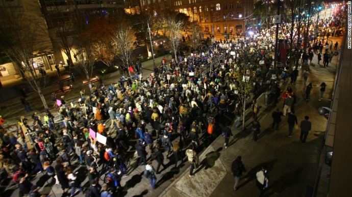 Dòng người biểu tình phản đối tân Tổng thống Donald Trump ở Seattle hôm 9/11 (Ảnh: CNN)