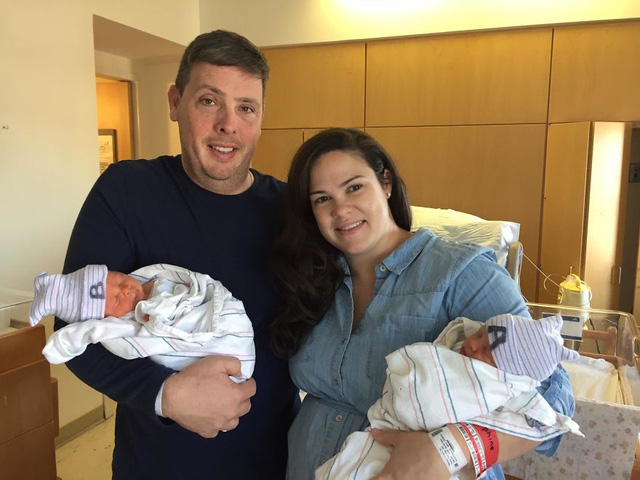 Cặp vợ chồng Emily và Seth Peterson đón chào hai thành viên mới trong gia đình là Samuel và Ronan.