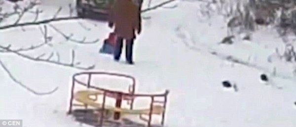 Trong đoạn video, có thể thấy người ông đang cùng cô cháu gái ba tuổi nô đùa bên xe trượt tuyết ở khu vực sân chơi dành riêng cho trẻ em.