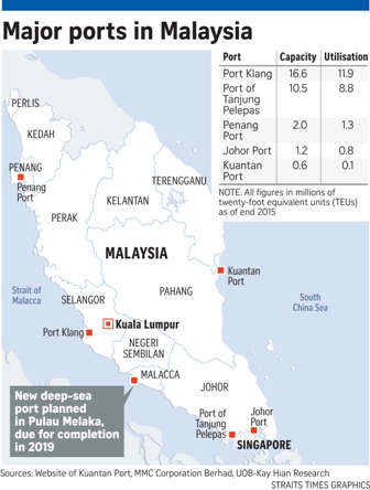 Sơ đồ các cảng biển chính của Malaysia. Ảnh: Straits Times
