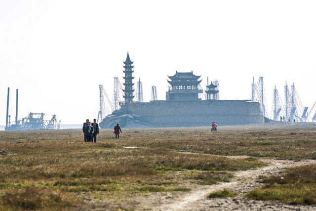 Khi mùa khô đến, hồ Poyang thường bị "co" lại thế nhưng đợt hạn hán kỷ lục vừa qua đã tạo ra điều khó tưởng. Giờ đây cả vùng hồ này chỉ còn lại đất cỏ. Người ta có thể xuống hồ mà đi bộ thoải mái.