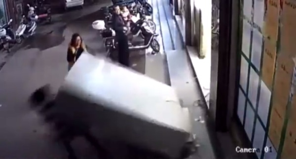 Hai mẹ con la hét thất thanh trước khi nằm gọn dưới chiếc tủ khổng lồ.