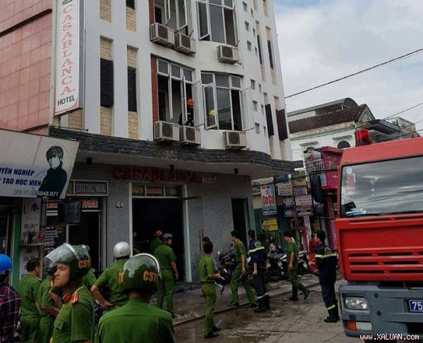 Sáng nay 21/11 vào khoảng 9h30i khách sạn 5 tầng Casablanca (44 Nguyễn Công Trứ, thành phố Huế, tỉnh Thừa Thiên – Huế) đă bốc cháy. Tại đây có rất nhiều khách nước ngoài đang ở. Khi nh́n thấy khách sạn bốc cháy ngùn ngụt, khói bay đen kịt họ đă khiếp vía, bỏ chạy tán loạn.