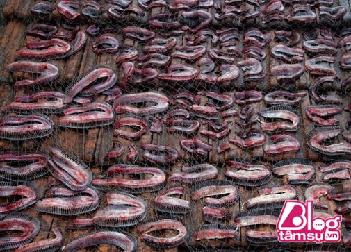 Chúng được phơi trên mái ngói của những ngôi nhà