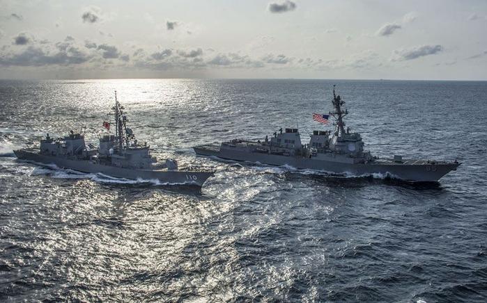 Tàu khu trục Mỹ và Nhật Bản tiến hành tập trận ở Tây Thái Bình Dương. Ảnh: Cankao