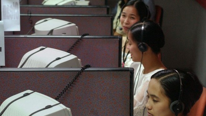 Các nhân viên làm việc tại một trung tâm ở Clark Field, căn cứ quân sự cũ của Mỹ được chuyển đổi thành khu kinh tế ở bắc Manila. Các cơ sở này bị nghi ngờ điều hành hoạt động cờ bạc trực tuyến dưới vỏ bọc trung tâm chăm sóc khách hàng. Ảnh: AFP.
