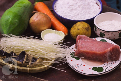 Trong thời gian chờ bột nghỉ, bạn ngâm miến, mộc nhĩ, nấm hương trong khoảng 5-10 phút.