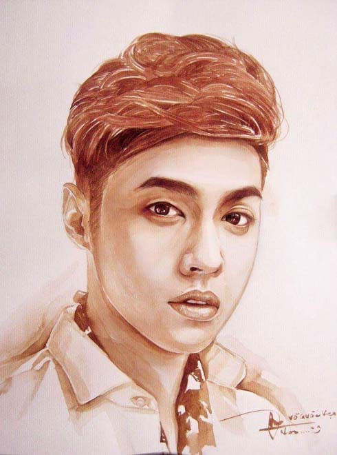 Chân dung ca sĩ Noo Phước Thịnh vẽ bằng cà phê