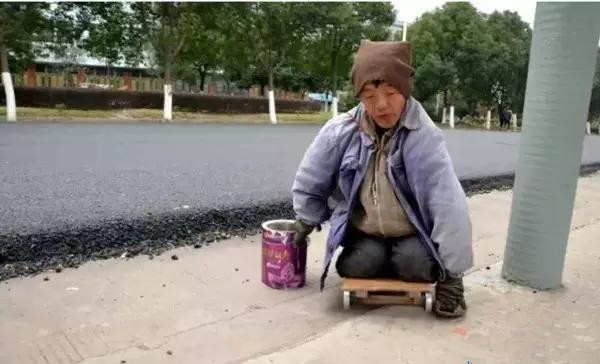 Có thể kể đến như trường hợp một người ăn mày dùng ván trượt bốn bánh, đi bằng 2 tay để ăn xin trên đường.