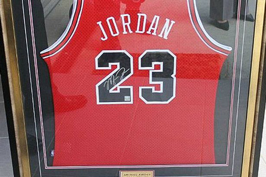 Kỷ vật của Michael Jackson (dưới) và áo bóng rổ của Michael Jordan.