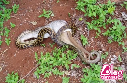Con chuột túi trông có vẻ to hơn con trăn nhưng nó đã bị con trăn này nuốt trọn.Chứng kiến cảnh tượng con trăn mở miệng to hết cỡ nuốt trọn con mồi khiến ai cũng phải rùng mình sợ hãi.Cận cảnh con trăn quấn chặt con mồi và nuốt trọn vào bụng.