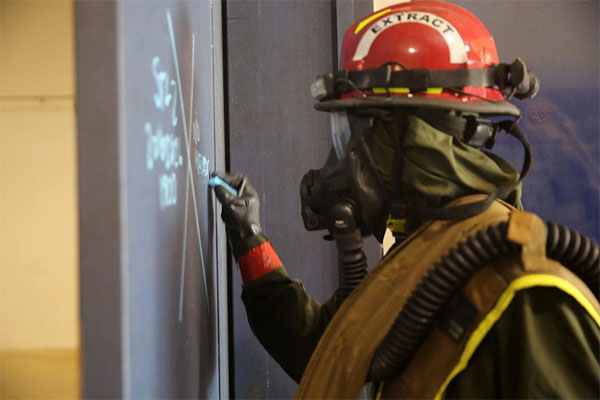 Dưới đây là hình ảnh các thành viên CBIRF hành động sau một cuộc gọi 911 về một cuộc tấn công hạt nhân, sinh học và hóa học.
