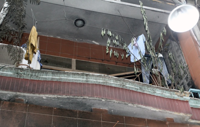 Tầng hai căn nhà có 4 người thuê trọ. Họ may mắn thoát khỏi hỏa hoạn khi nhảy từ ban công xuống, song 2 người bị thương nặng.