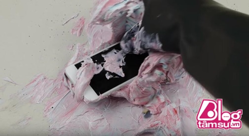 Lớp kem tan ra và điều ngạc nhiên là chiếc iPhone 7 vẫn còn nguyên hình dáng, không hề bị va đập, hay trầy xước. Sau khi lau sạch lớp kem còn bám trên điện thoại và khởi động lại, chiếc iPhone như được làm mới và không hề có chút gì thay đổi.
